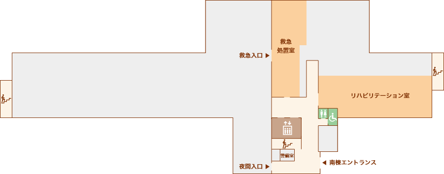 リハビリテーション室と救急処置室を配置しています。