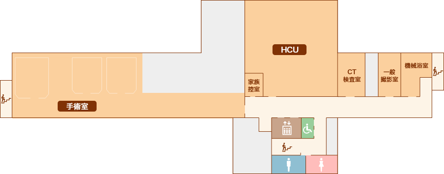 手術室、HCU、CT検査室などを配置しています。